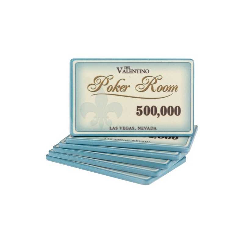 Valentino poker chips are of the highest quality and come from the manufacturer Sun Fly. The plates are made of ceramic material and weigh 41 grams. Thanks to their beautiful colors and values, they can be used for both cash games and tournaments. The classic pattern is printed directly on the chips and is extremely durable. If you have played a poker tournament at the Venetian Casino in Las Vegas, you will notice the similarity between Valentino and the Venetian tournament chips. Sun-Fly also produces the chips for The Venetian, so the quality is absolutely identical. Plate value 500,000